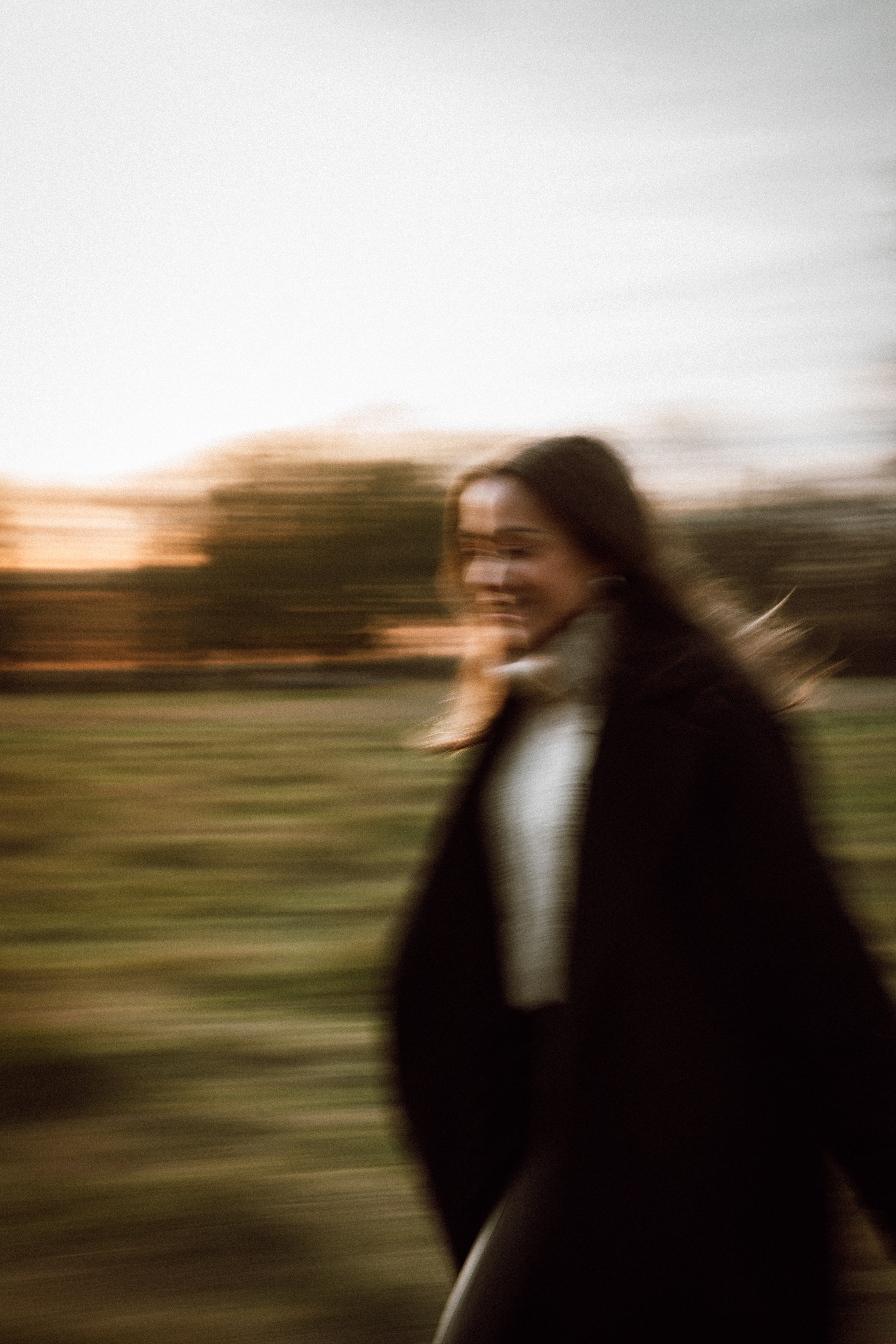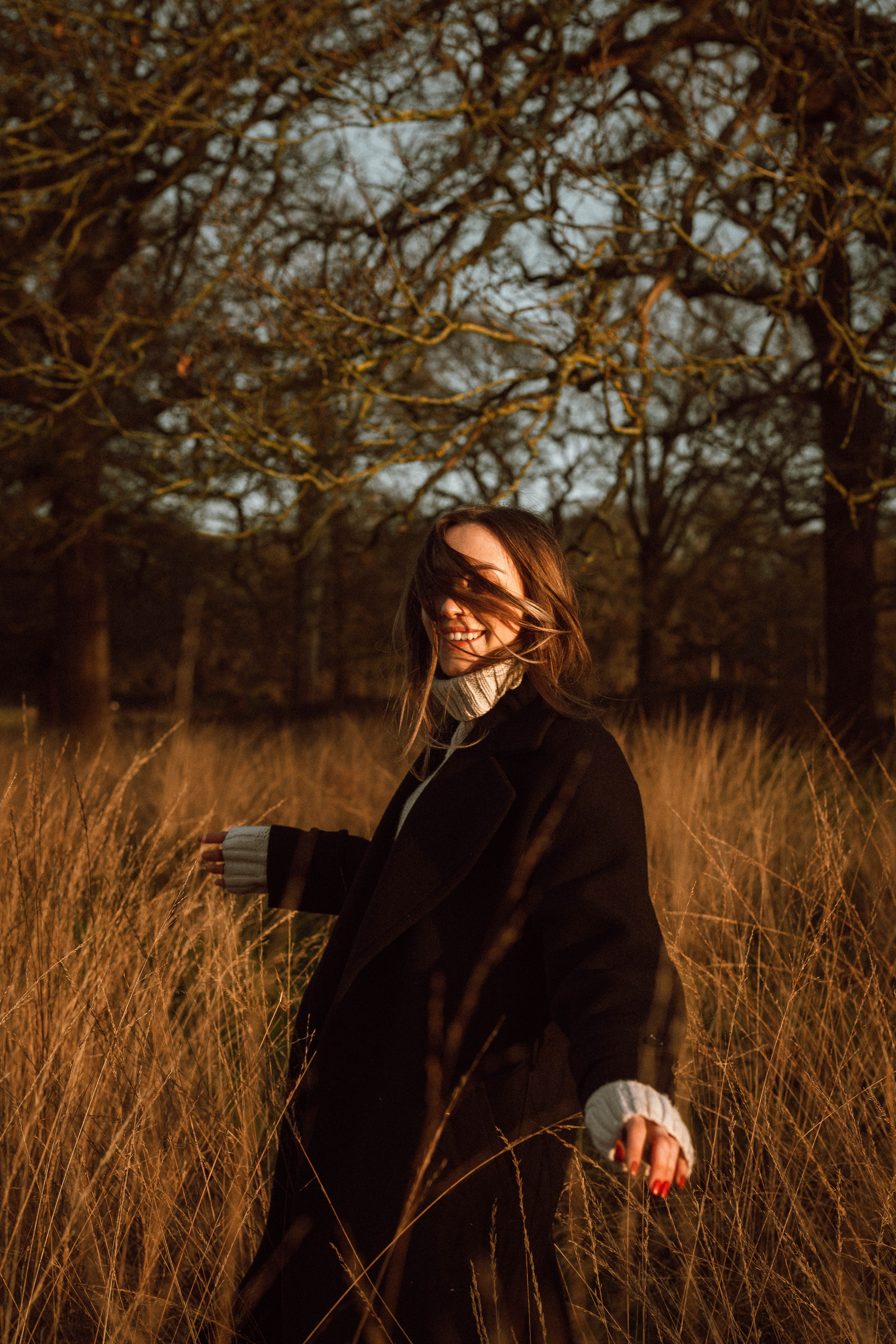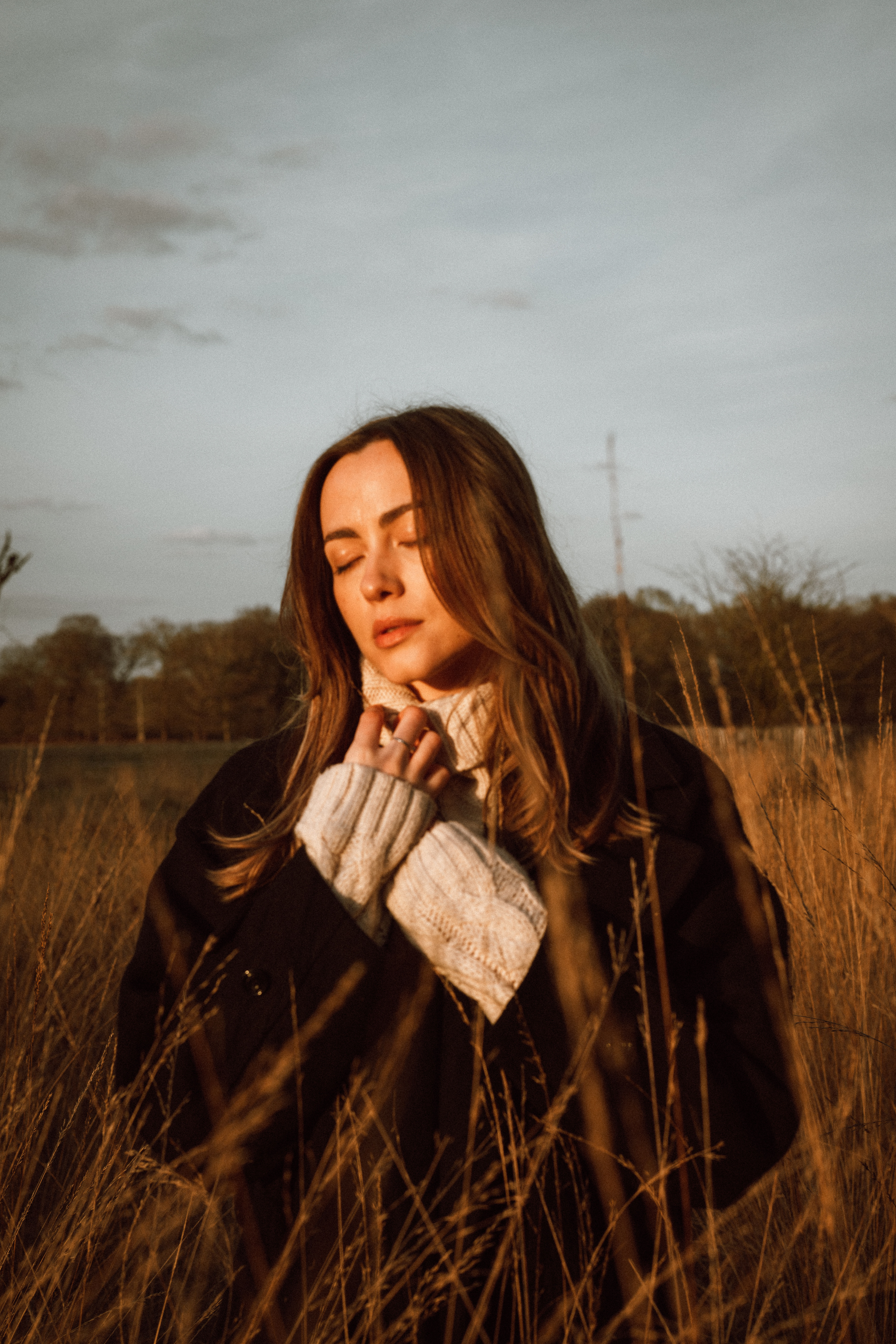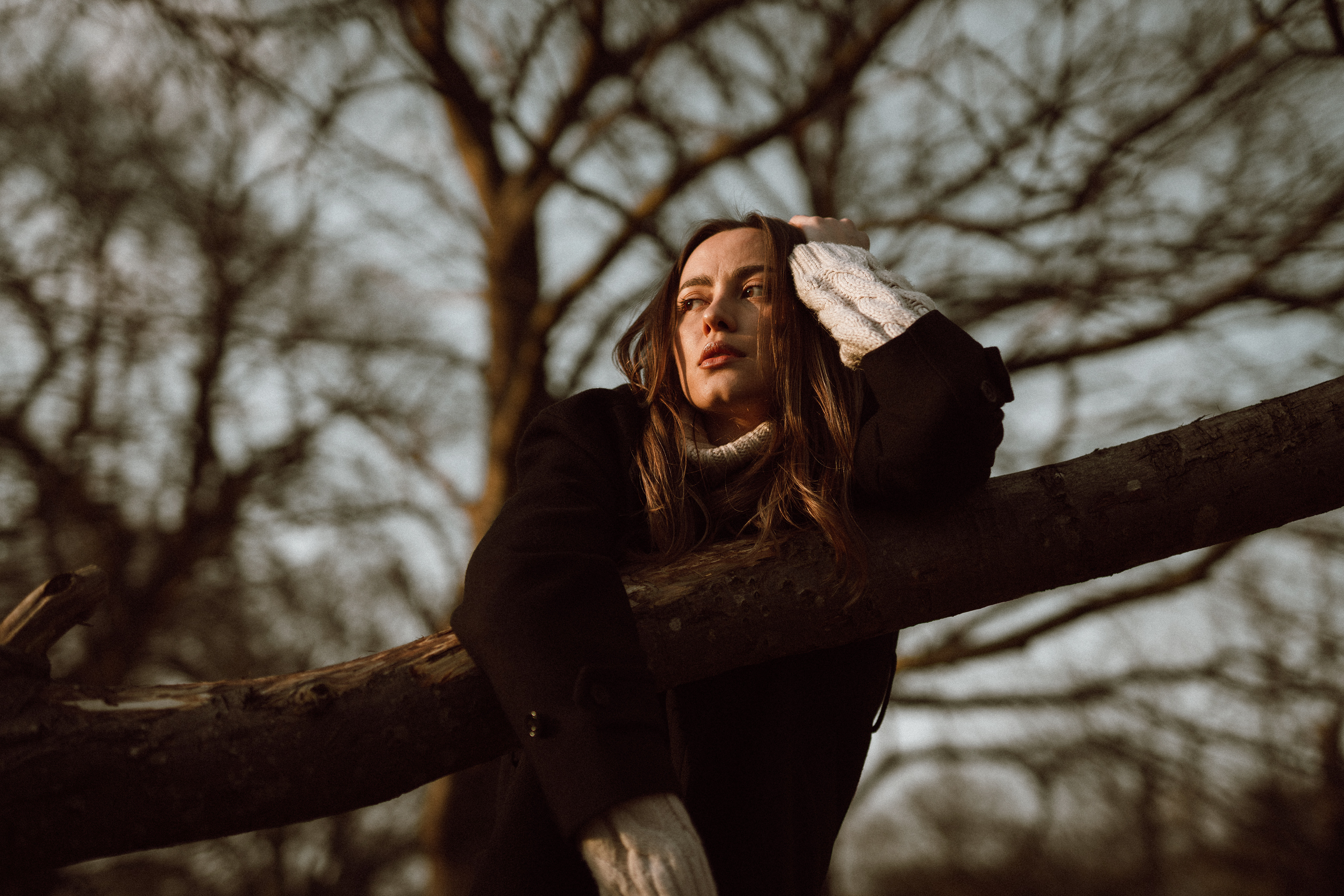 Shot on a crisp winter afternoon, this portrait series with Caroline captures a quiet strength and natural elegance. Set against golden fields and bare trees, the mood is soft, introspective, and timeless.