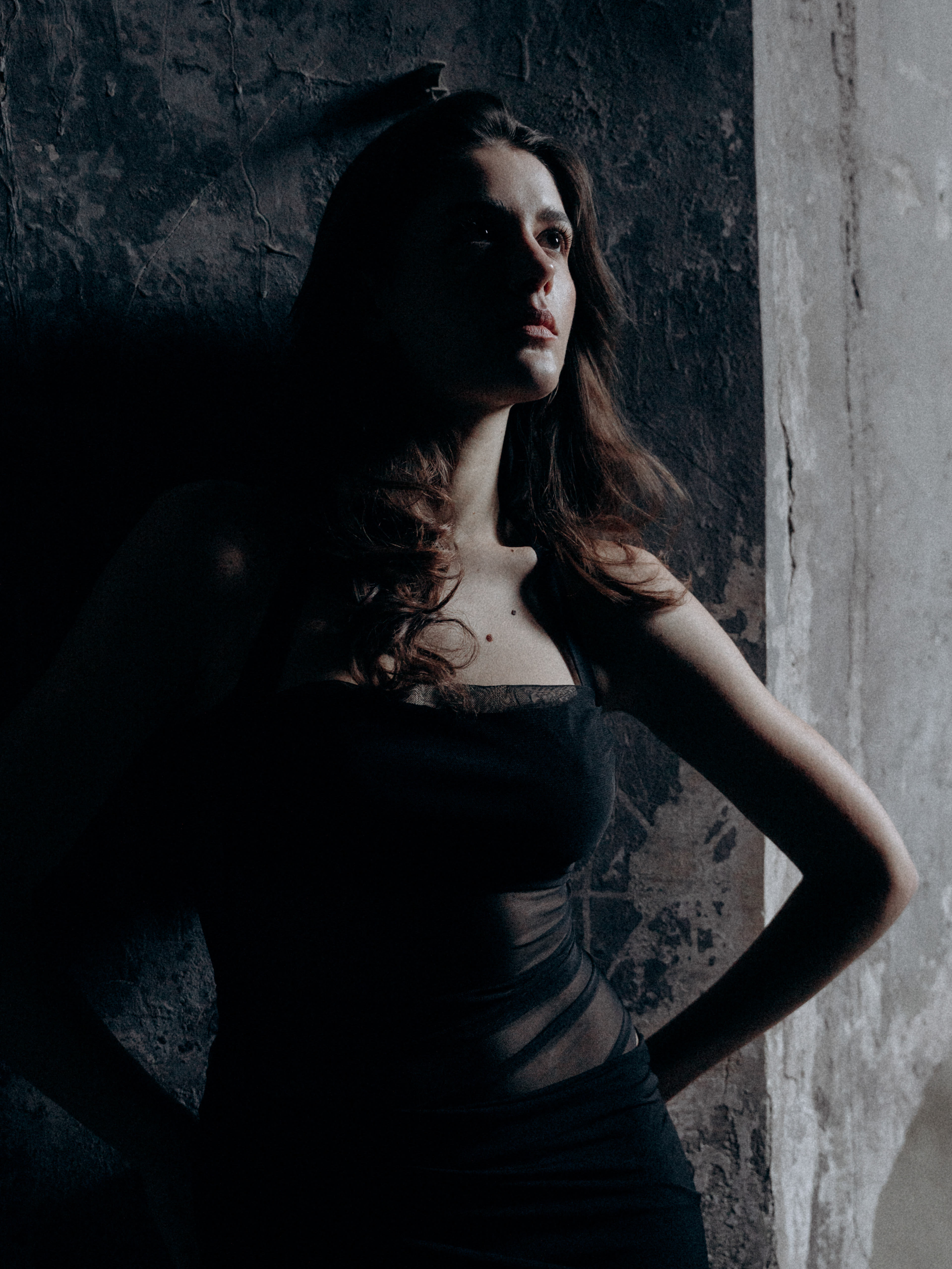 In the quiet depths of Naples, light cuts through stone and silence. This series traces Chiara through shadow and texture, where every gesture feels suspended, and every frame holds a quiet intensity shaped by darkness and form.